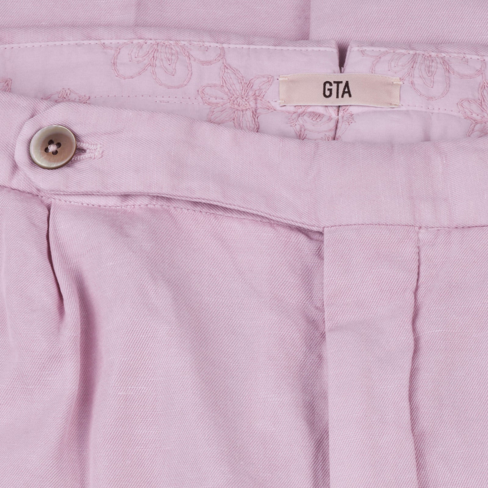 Die GTA Baumwollhose in Pastellrosa, eine elegante Mischung aus Baumwolle und Leinen, ist eine frische Ergänzung für jede Frühjahrs- und Sommergarderobe. Dieses leichte und atmungsaktive Kleidungsstück kombiniert den kühlenden Komfort von Leinen mit der Weichheit und Robustheit von Baumwolle. Die zarte Pastellrosa-Farbe verleiht jedem Outfit eine sanfte, modische Note. Perfekt für Tage, an denen sowohl Stil als auch Komfort gefragt sind, passt diese Hose wunderbar zu leichten Blusen oder lockeren Shirts. Ein Must-have für warme Tage, das sowohl Lässigkeit als auch Eleganz ausstrahlt.